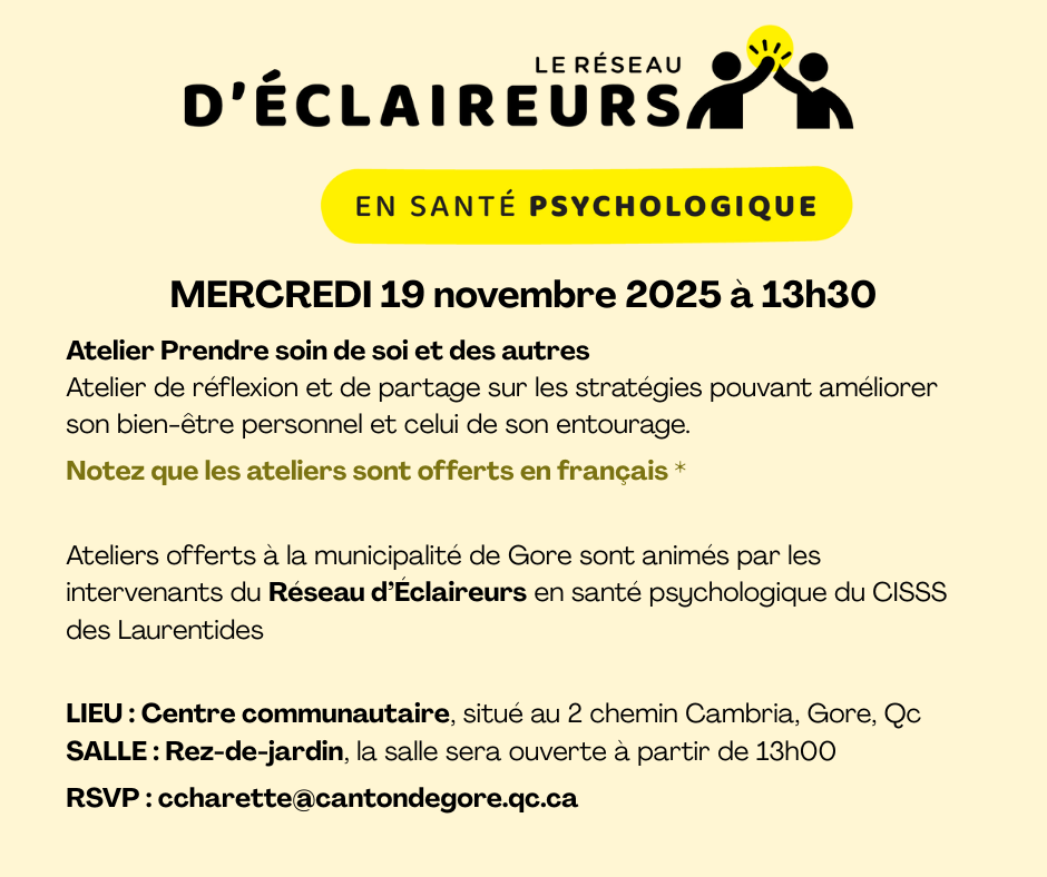 Facilitated by the interveners from the psychological health scout network of the CISSS des Laurentides