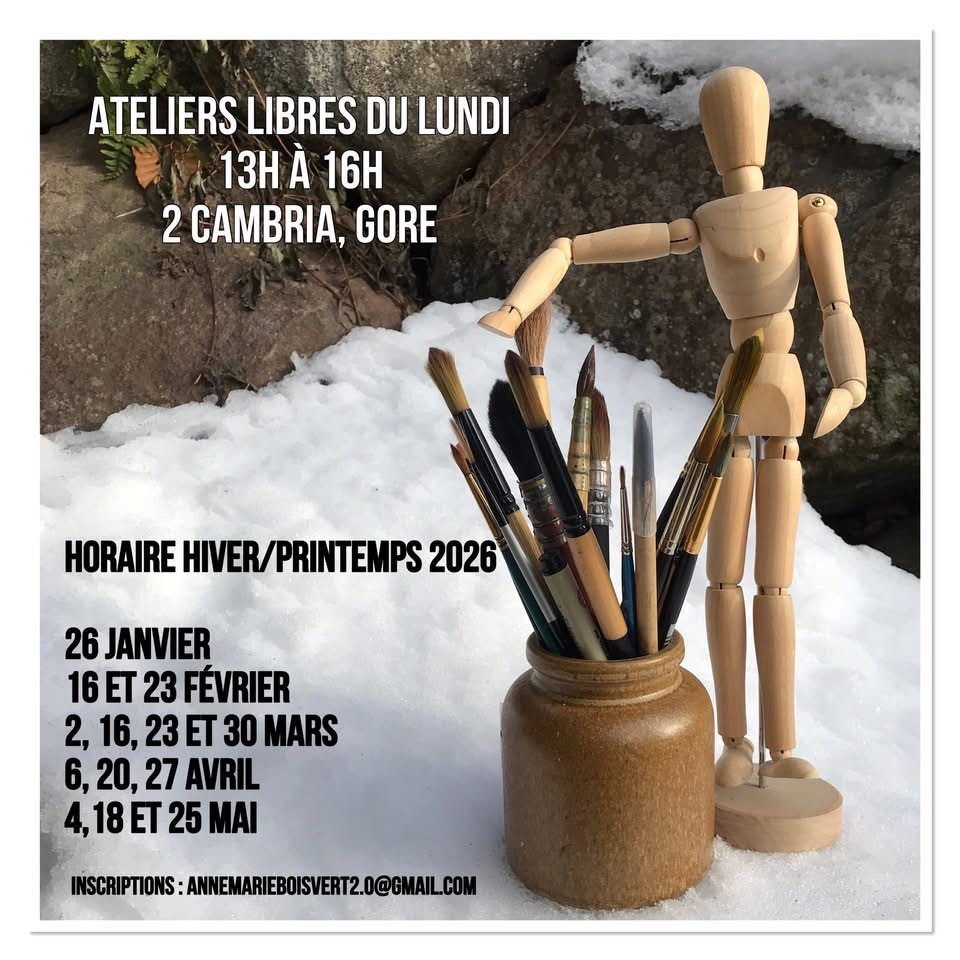 Please note that there will be no open workshop (atelier libre) on Monday, April 6, 2026.
