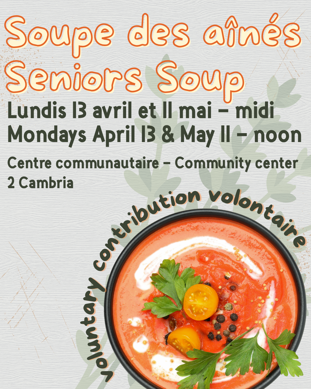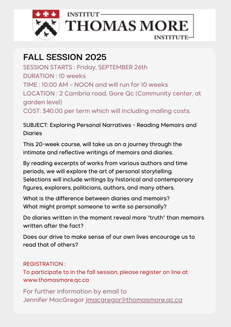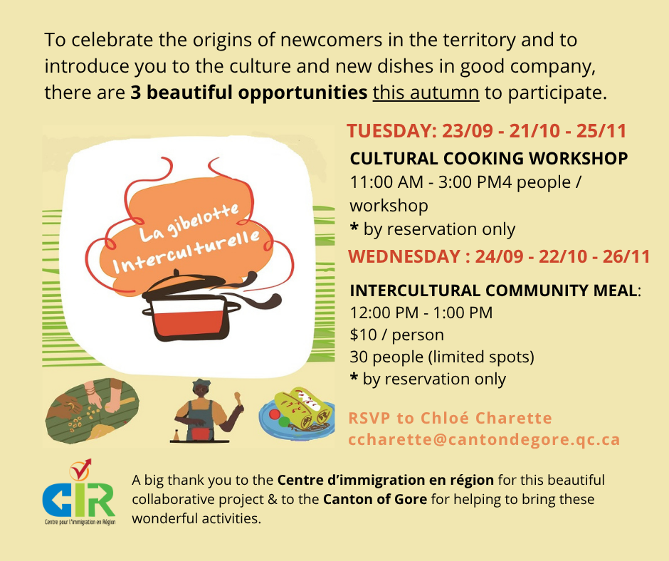 to book : ccharette@cantondegore.qc.ca or (450) 562-2025 p. 3530