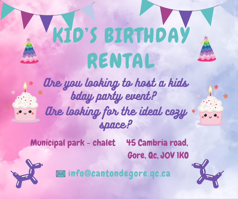 Chloé Charette - Leisure, Culture & Community life manager - ccharette@cantondegore.qc.ca - 450-562-2025 p. 3530