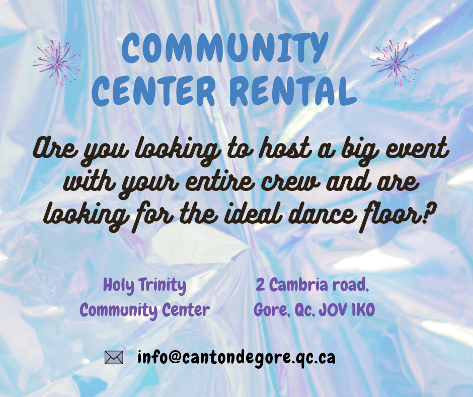 In order to book to community center on a specific date for an event, it is important to pay the rental cost, as soon as possible, in order to confirm your reservation.The community hall being very popular, you have to book several weeks in advance and even a few months if you want a specific day.