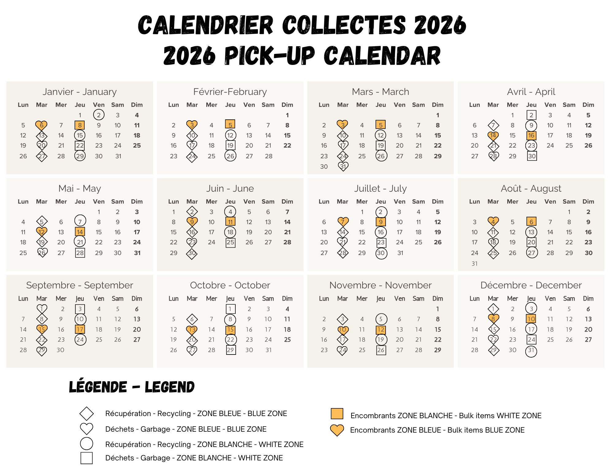 Calendrier 2025 des collectes selon la Zone :
