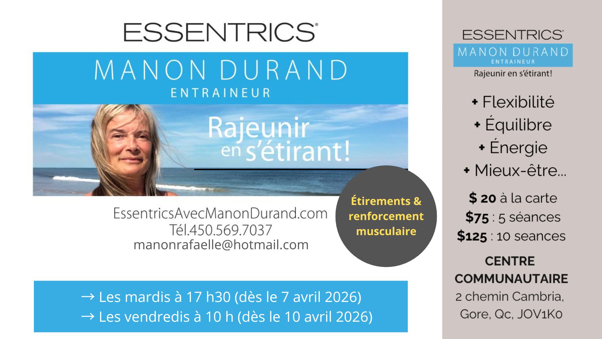 to book : ccharette@cantondegore.qc.ca or (450) 562-2025 p. 3530