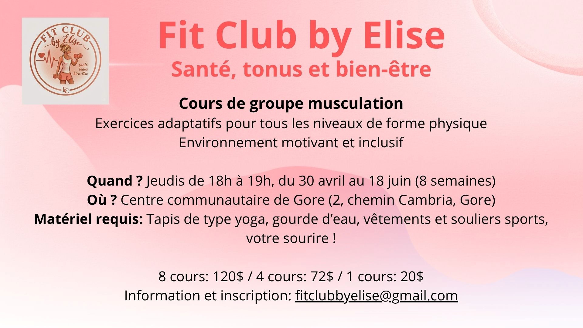 Ci-dessous, vous trouverez tous les cours, les ateliers et les activités qui auront lieu prochainement au centre communautaire (2, chemin Cambria, Gore).